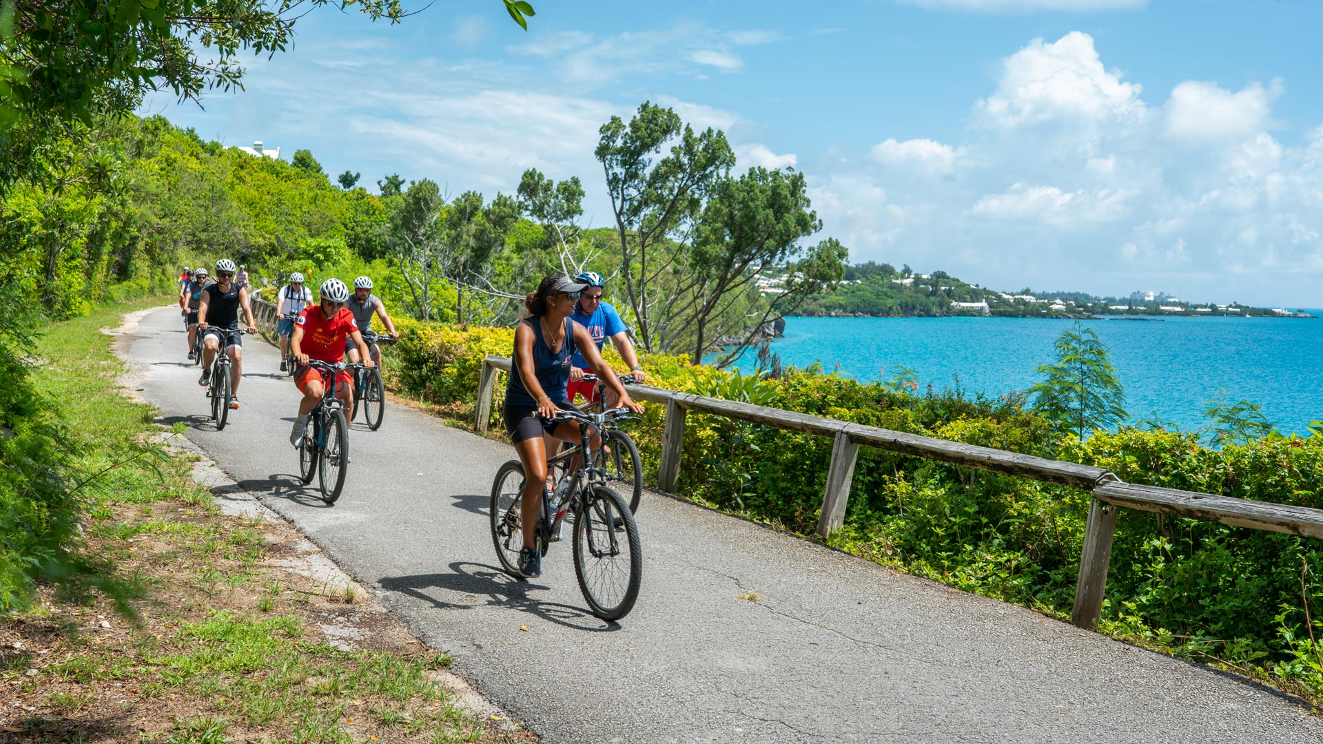 View Tour DetailsMaximize your time in Bermuda on this great combination tour! First, enjoy sight-seeing in the rural West End on your shuttle to Ely’s Harbour. Here you will be provided with a 21 speed, Mountain Bike and a quality bike helmet. After receiving a safety briefing, you will begin your guided cycle tour along the original and famous Bermuda Railway Trail. During the bike ride, your guide will stop at various points of interest along the 5-8 miles of mostly flat trail to provide an informative commentary on the natural environment and historic points of interest. You will enjoy spectacular scenery along the trail, including Heydon Trust Park and the historic Fort Scaur. After your ride, cool off with a refreshing swim at the beach.
