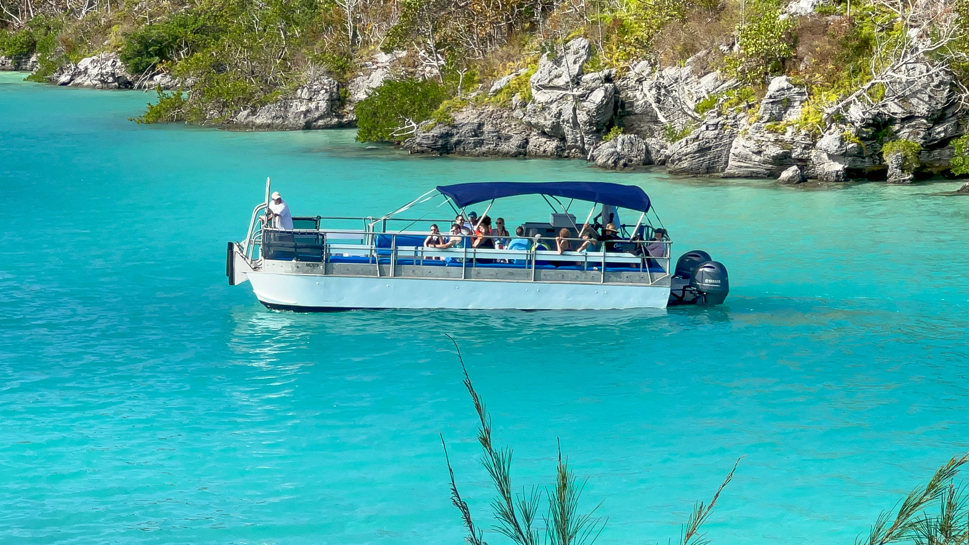 This 40′ Power Catamaran “Eco Express” is a spacious charter boat which has plenty of sit down and walk around room from bow to stern for up to 40 persons. Whether your group is small or large this boat can take you and your guests to places on the water quickly. 65% of the boat has shaded bimini top seating and 35% is open air seating, giving your group the ability to enjoy two types of experiences onboard. Docking at marinas, concrete docks, and alongside other vessels is very easy and best suited with this style boat. Eco Express also has a bathroom onboard and a full music and PA system to make your transport time onboard fun and enjoyable. Experience Bermuda the way most locals do, on a boat!